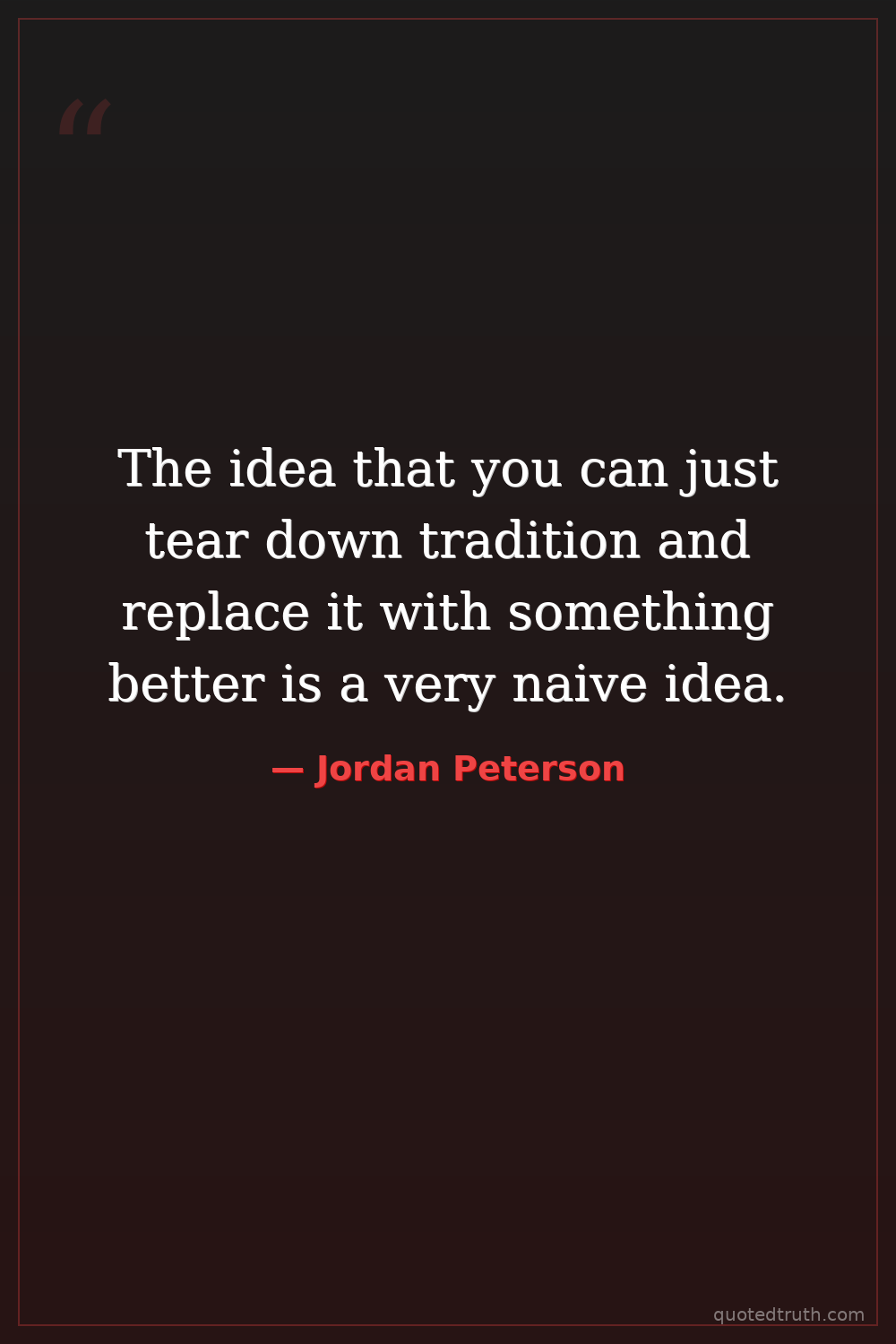 The idea that you can just tear down tradition and replace it with something better is a very naive idea.