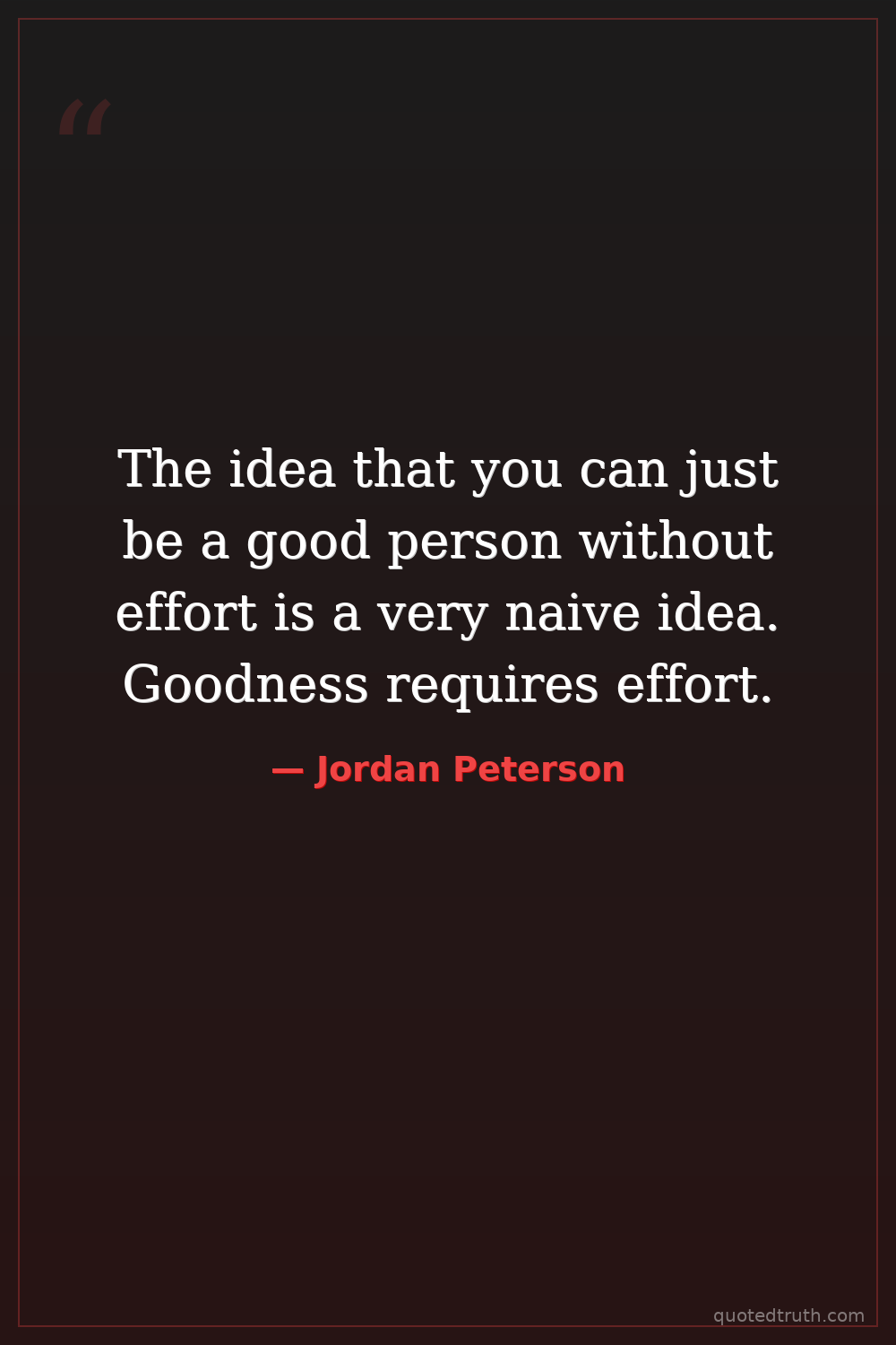 The idea that you can just be a good person without effort is a very naive idea. Goodness requires effort.