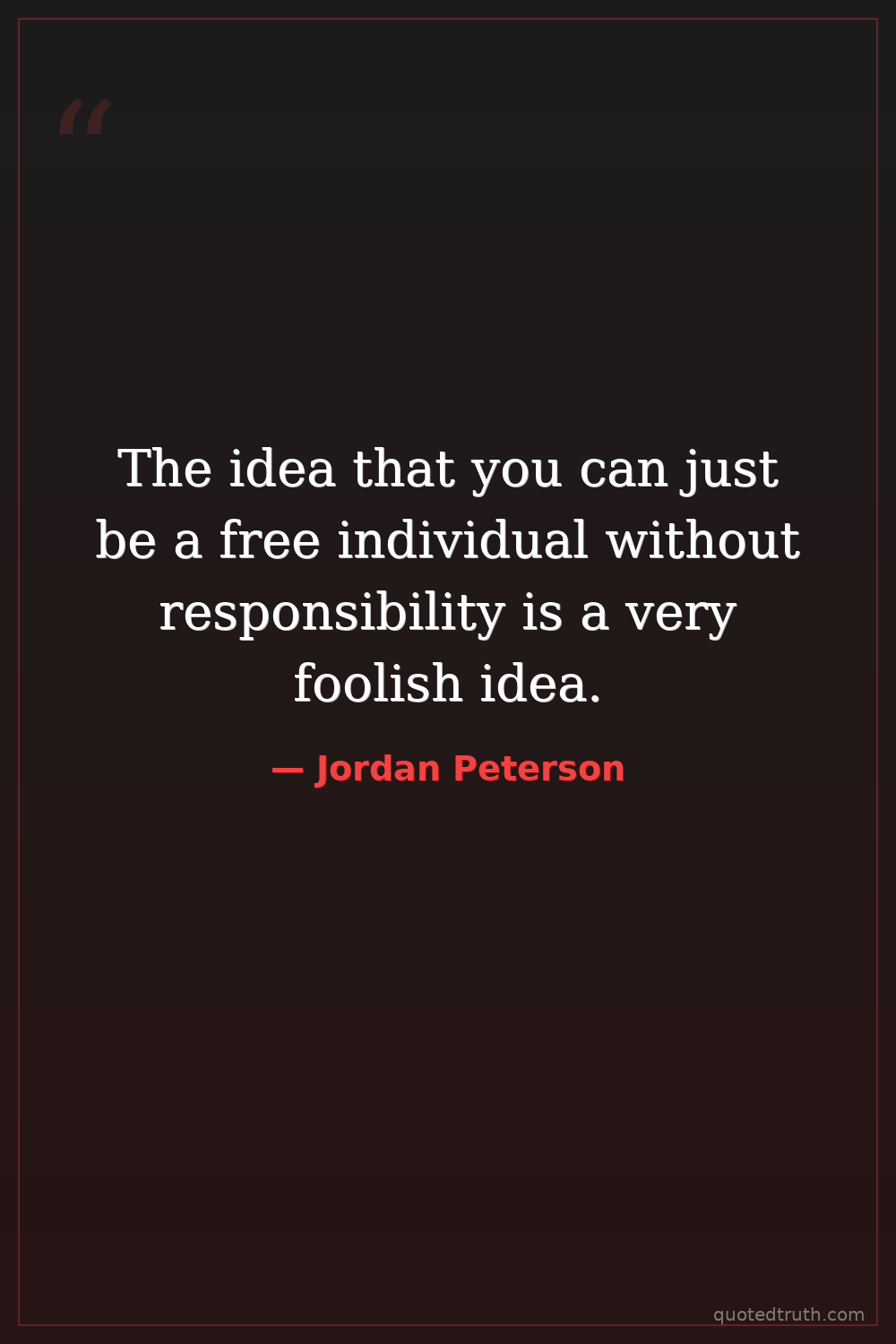 The idea that you can just be a free individual without responsibility is a very foolish idea.
