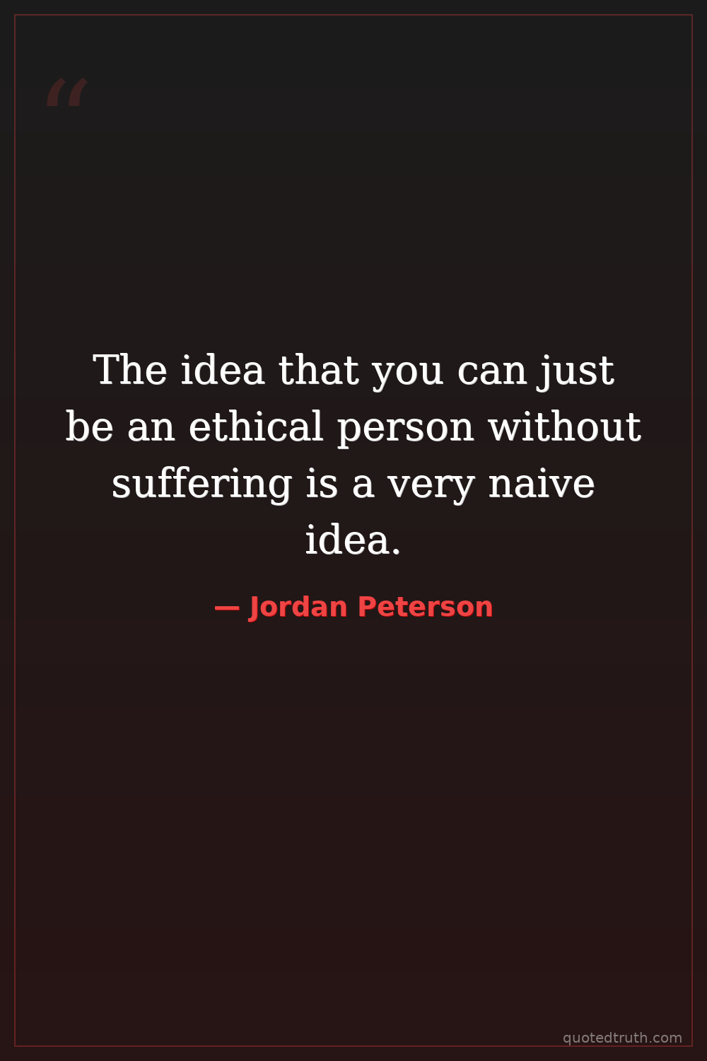 The idea that you can just be an ethical person without suffering is a very naive idea.