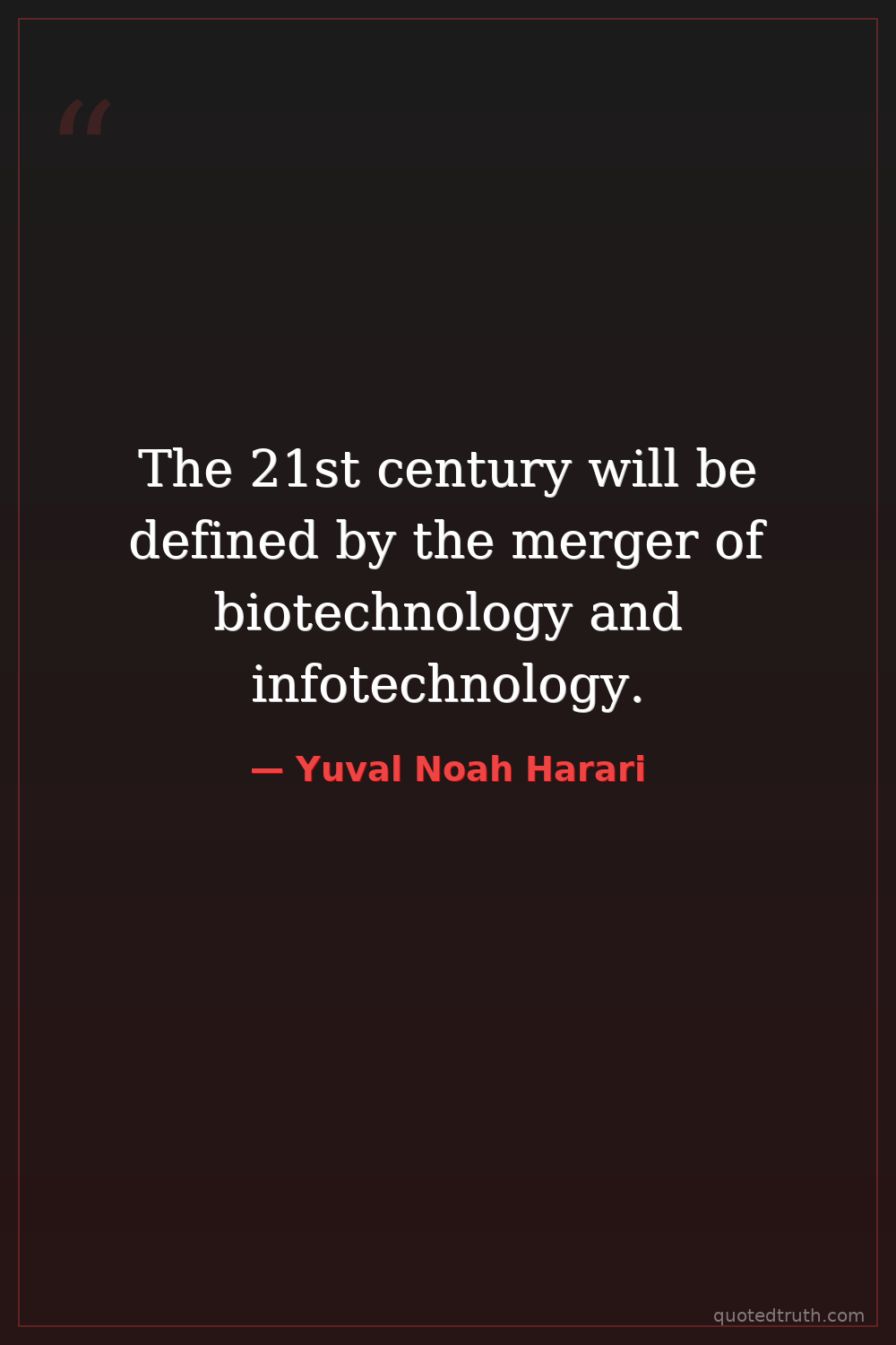 The 21st century will be defined by the merger of biotechnology and infotechnology.