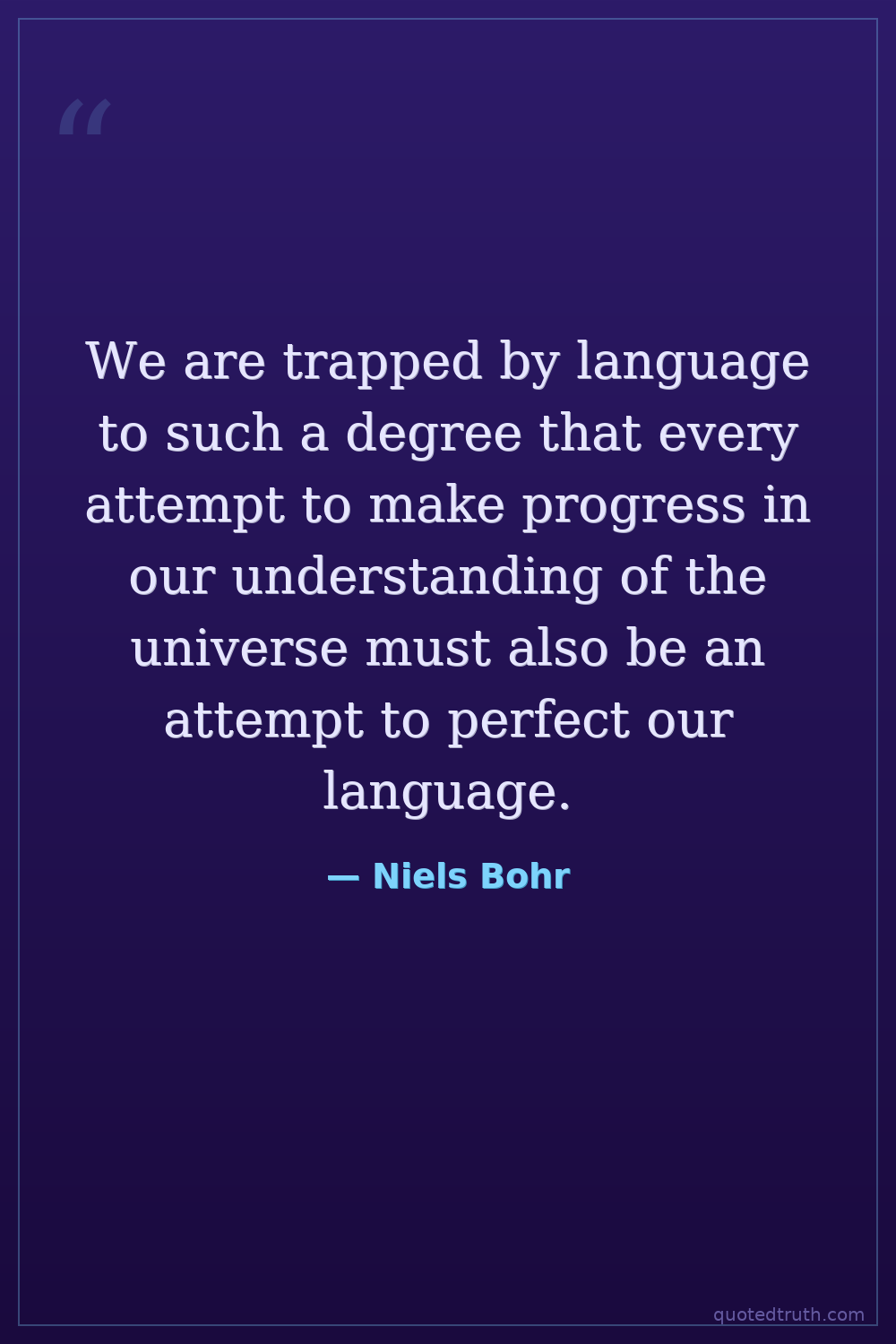 We are trapped by language to such a degree that every attempt to make progress in our understanding of the universe must also be an attempt to perfect our language.