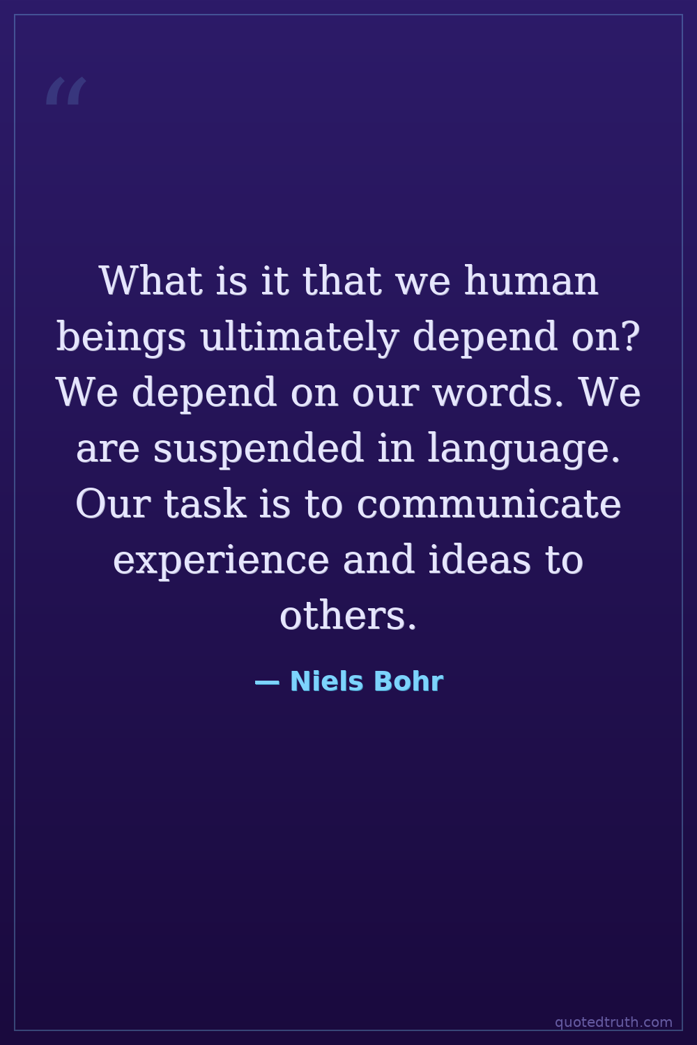 What is it that we human beings ultimately depend on? We depend on our words. We are suspended in language. Our task is to communicate experience and ideas to others.