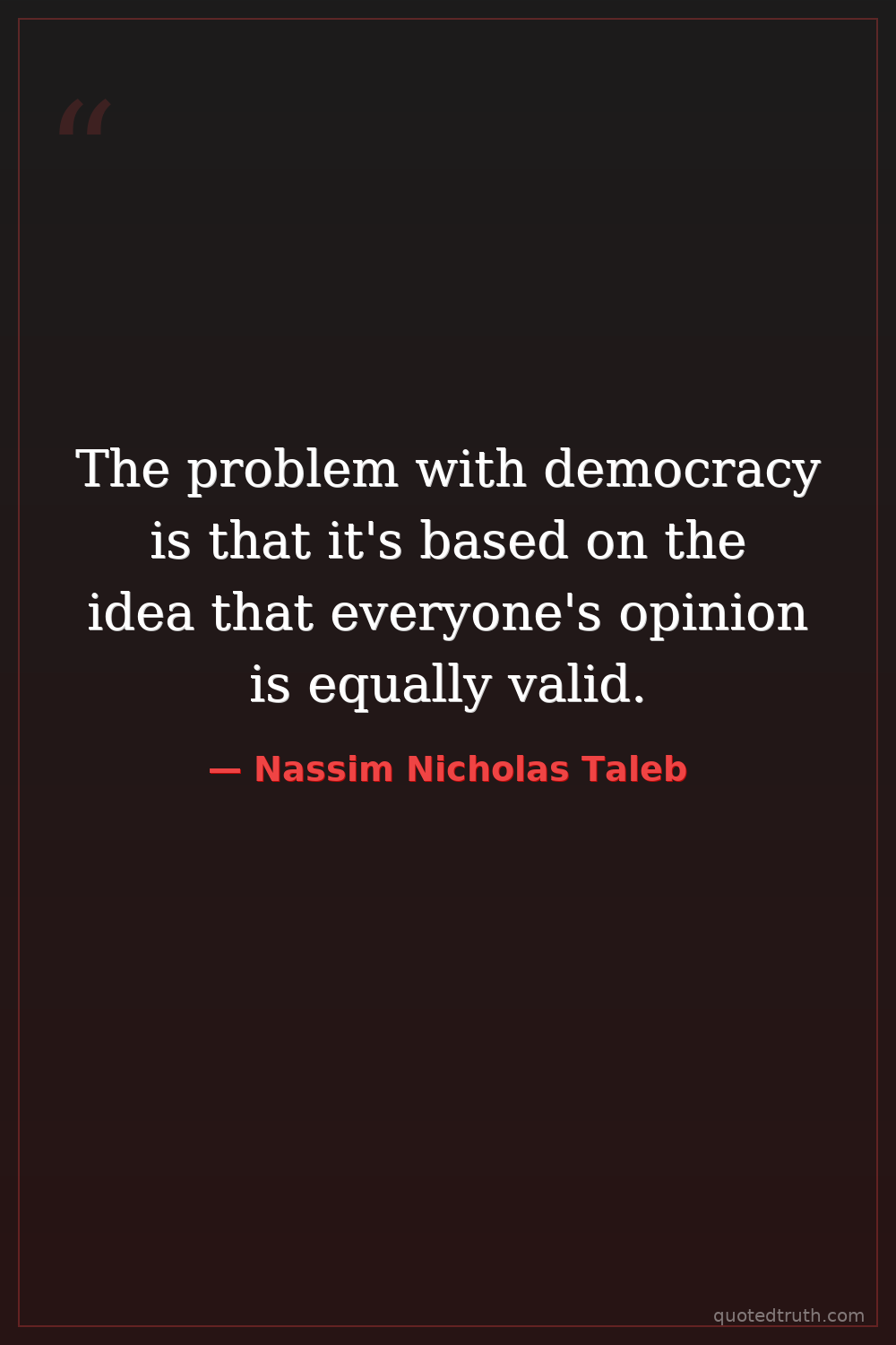 The problem with democracy is that it's based on the idea that everyone's opinion is equally valid.