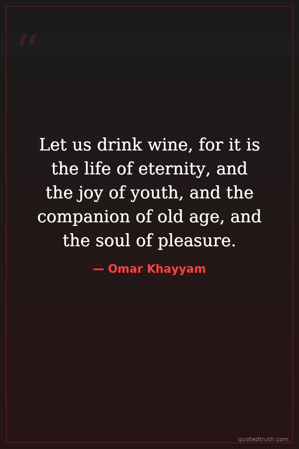 Let us drink wine, for it is the life of eternity, and the joy of youth, and the companion of old age, and the soul of pleasure.