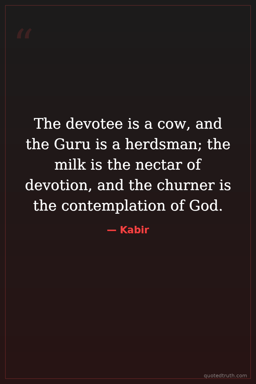 The devotee is a cow, and the Guru is a herdsman; the milk is the nectar of devotion, and the churner is the contemplation of God.
