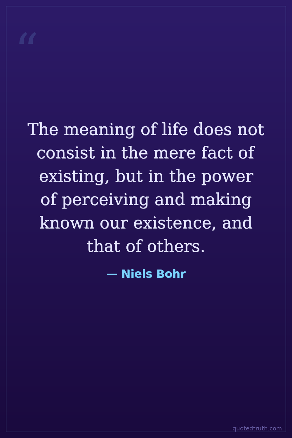 The meaning of life does not consist in the mere fact of existing, but in the power of perceiving and making known our existence, and that of others.