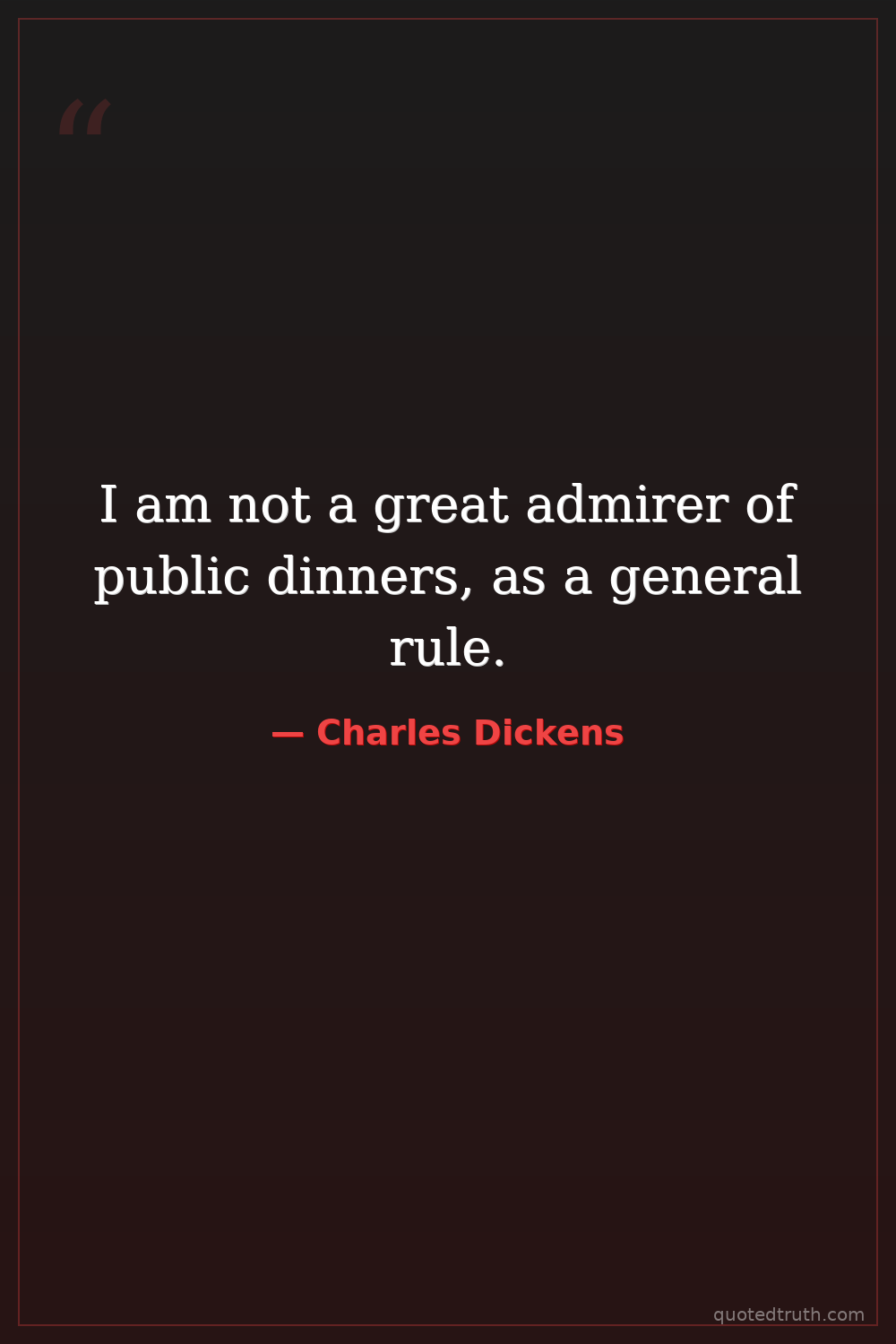 I am not a great admirer of public dinners, as a general rule.
