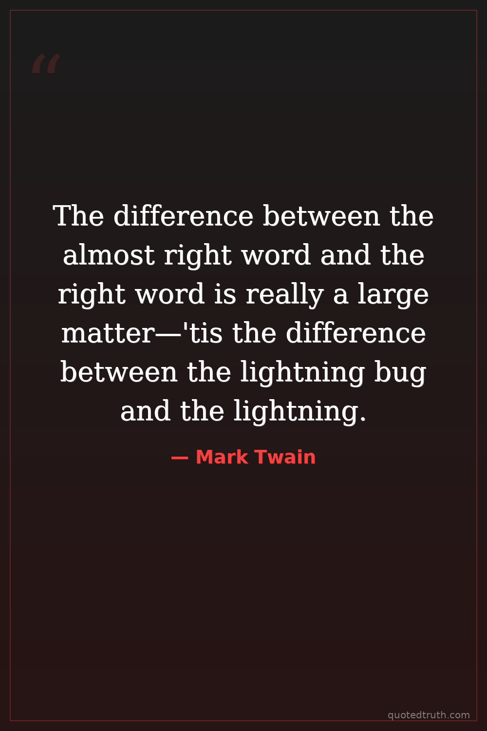 The difference between the almost right word and the right word is really a large matter—'tis the difference between the lightning bug and the lightning.