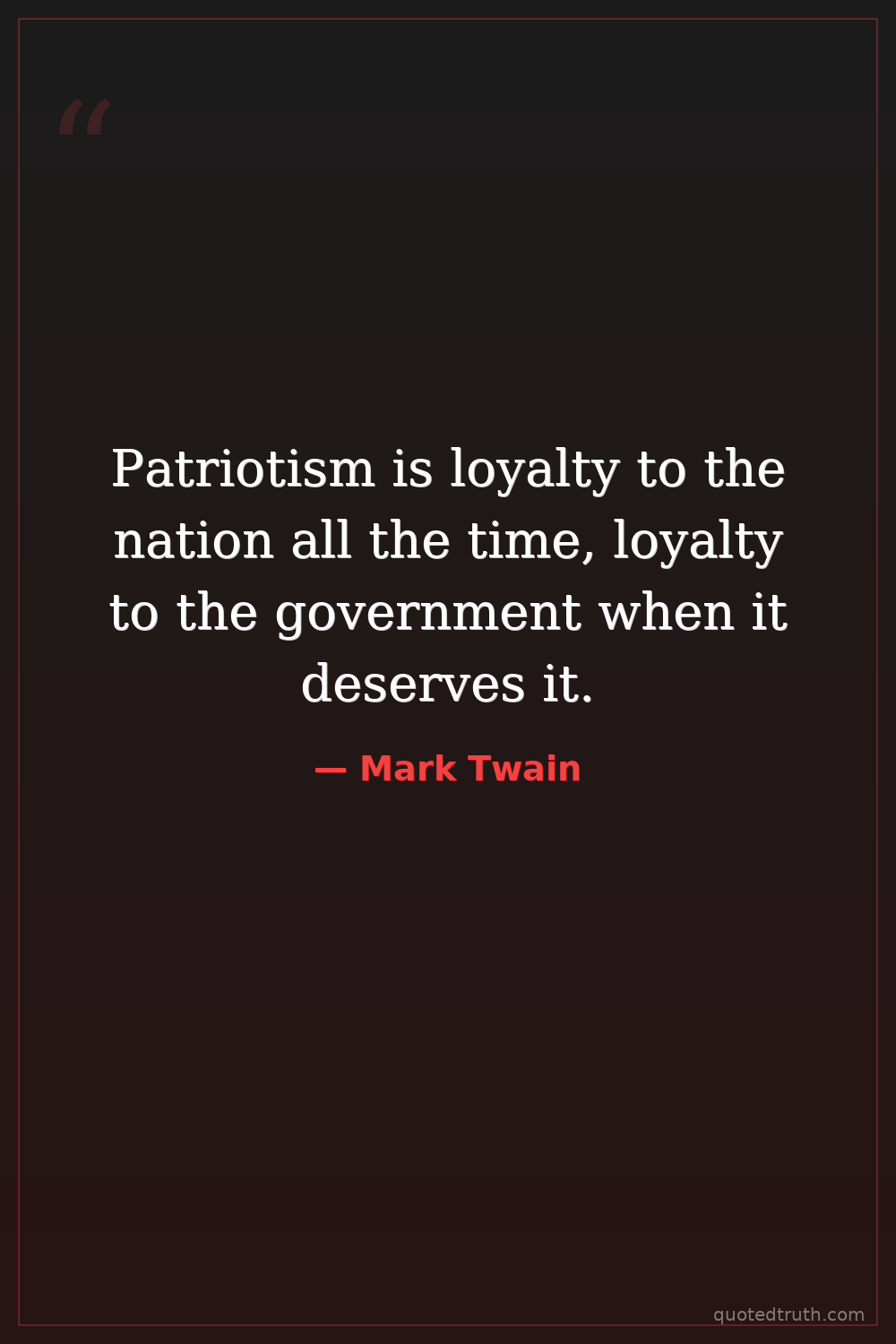 Patriotism is loyalty to the nation all the time, loyalty to the government when it deserves it.