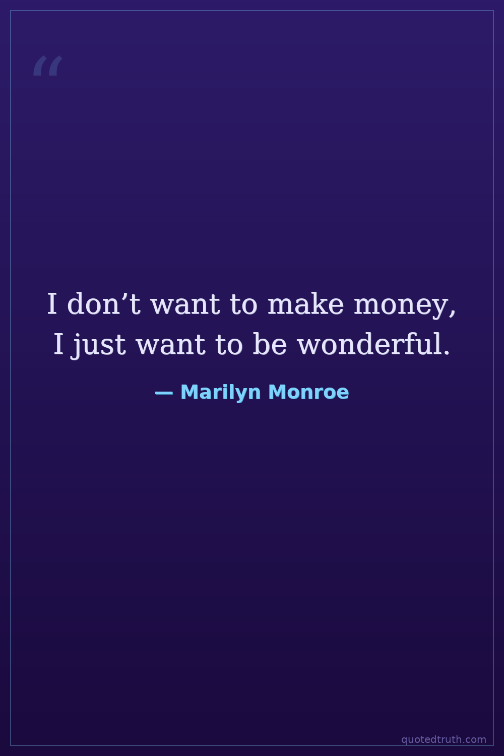 I don’t want to make money, I just want to be wonderful.