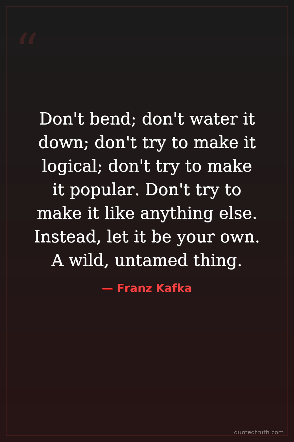 Don't bend; don't water it down; don't try to make it logical; don't try to make it popular. Don't try to make it like anything else. Instead, let it be your own. A wild, untamed thing.