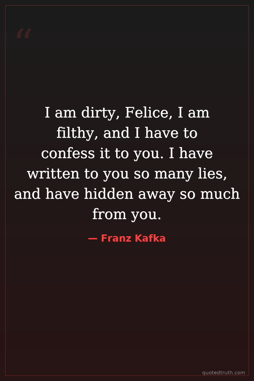 I am dirty, Felice, I am filthy, and I have to confess it to you. I have written to you so many lies, and have hidden away so much from you.