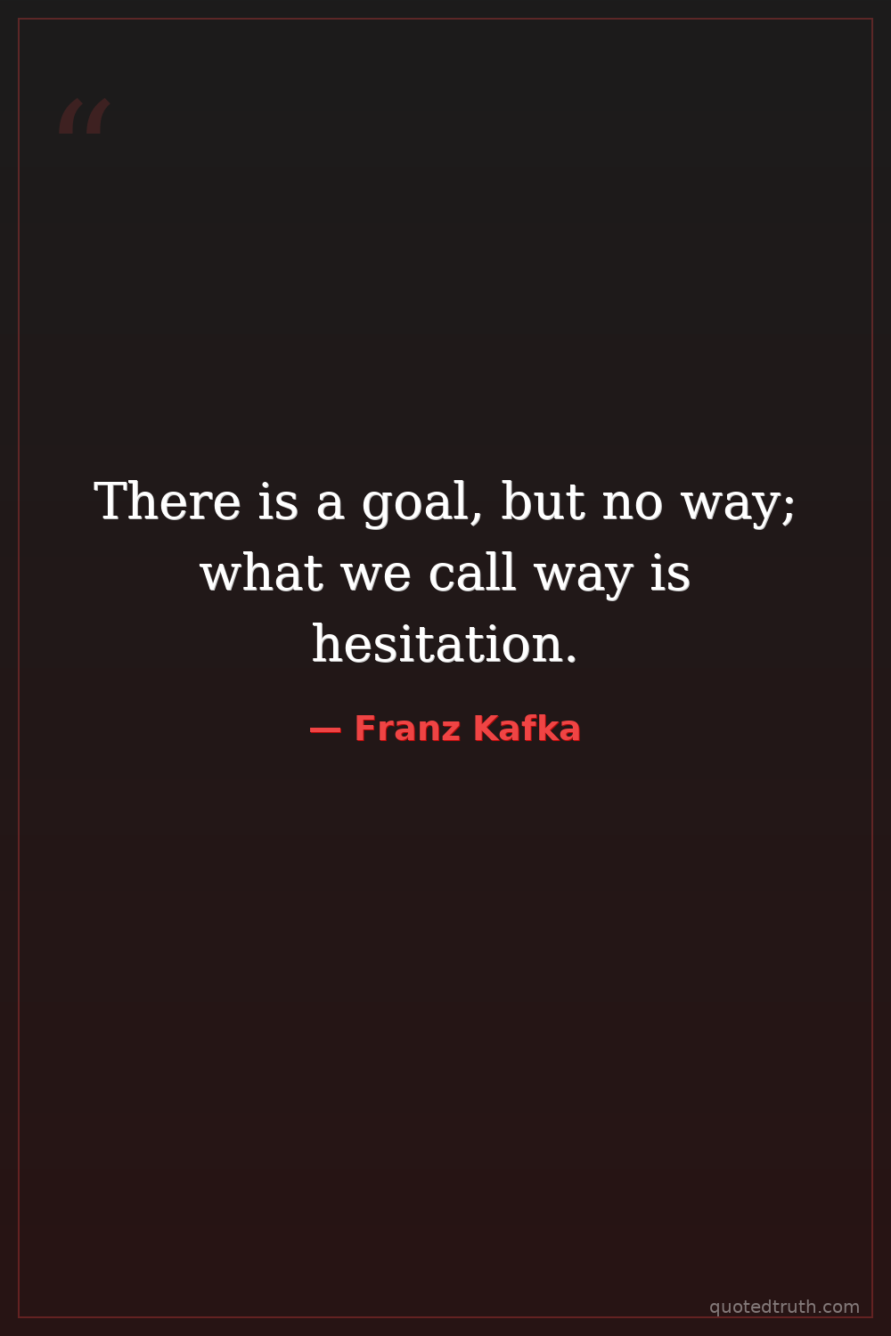 There is a goal, but no way; what we call way is hesitation.