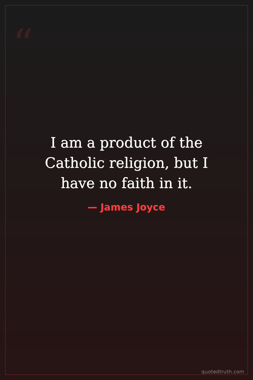 I am a product of the Catholic religion, but I have no faith in it.