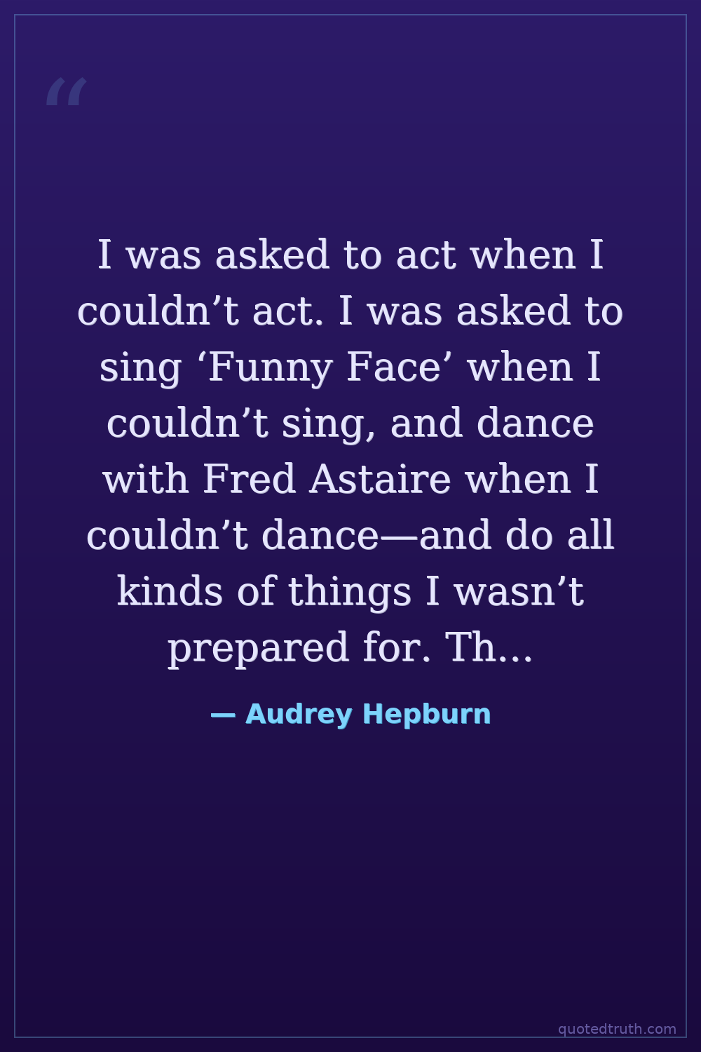 I was asked to act when I couldn’t act. I was asked to sing ‘Funny Face’ when I couldn’t sing, and dance with Fred Astaire when I couldn’t dance—and do all kinds of things I wasn’t prepared for. Then I tried like mad to cope with it.