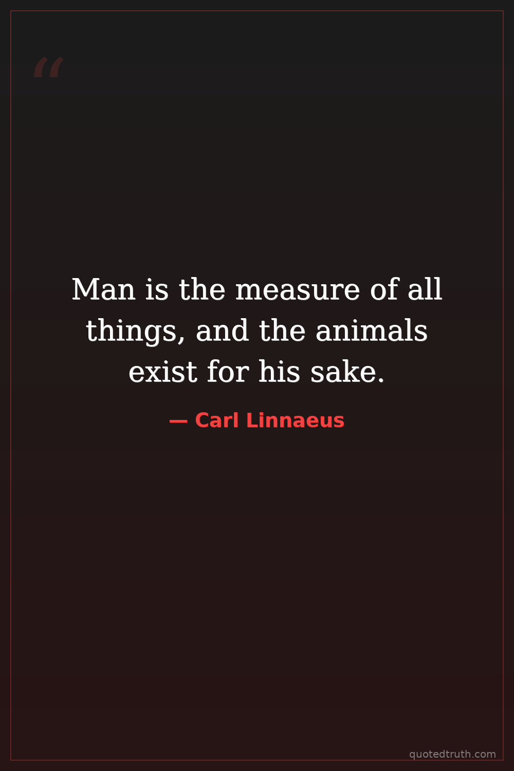 Man is the measure of all things, and the animals exist for his sake.