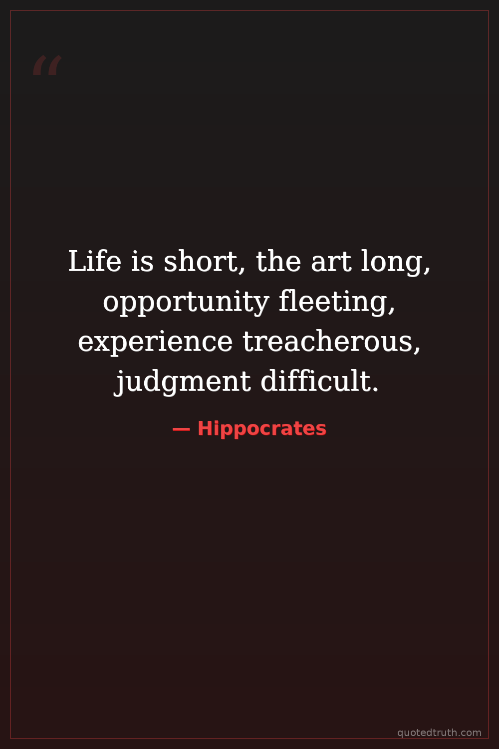 Life is short, the art long, opportunity fleeting, experience treacherous, judgment difficult.