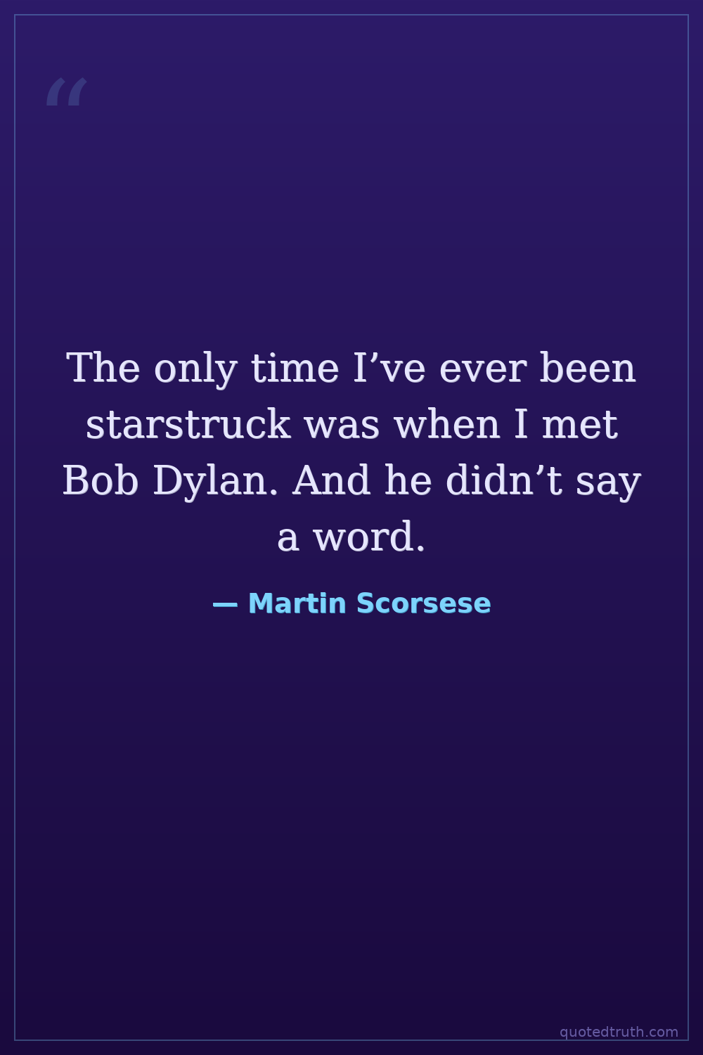 The only time I’ve ever been starstruck was when I met Bob Dylan. And he didn’t say a word.