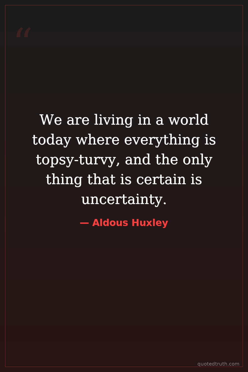 We are living in a world today where everything is topsy-turvy, and the only thing that is certain is uncertainty.