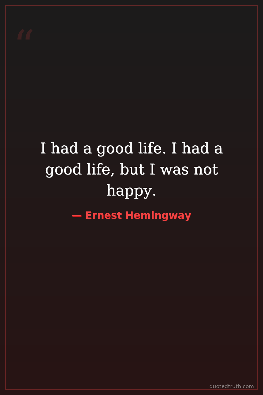 I had a good life. I had a good life, but I was not happy.