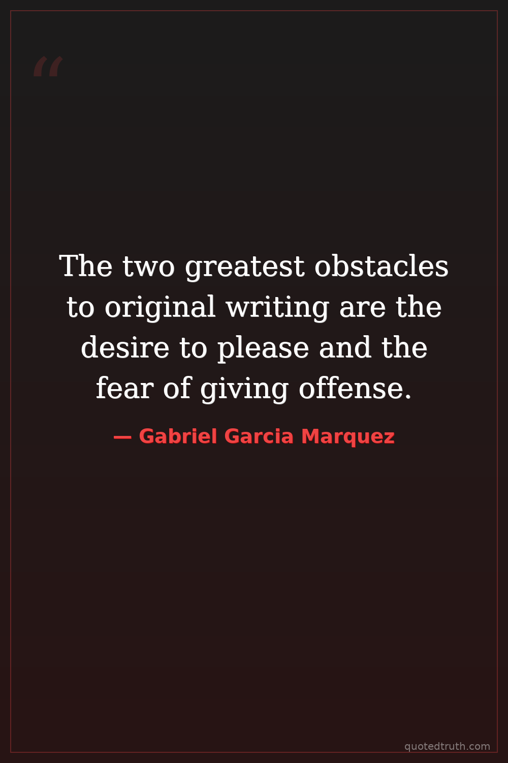 The two greatest obstacles to original writing are the desire to please and the fear of giving offense.
