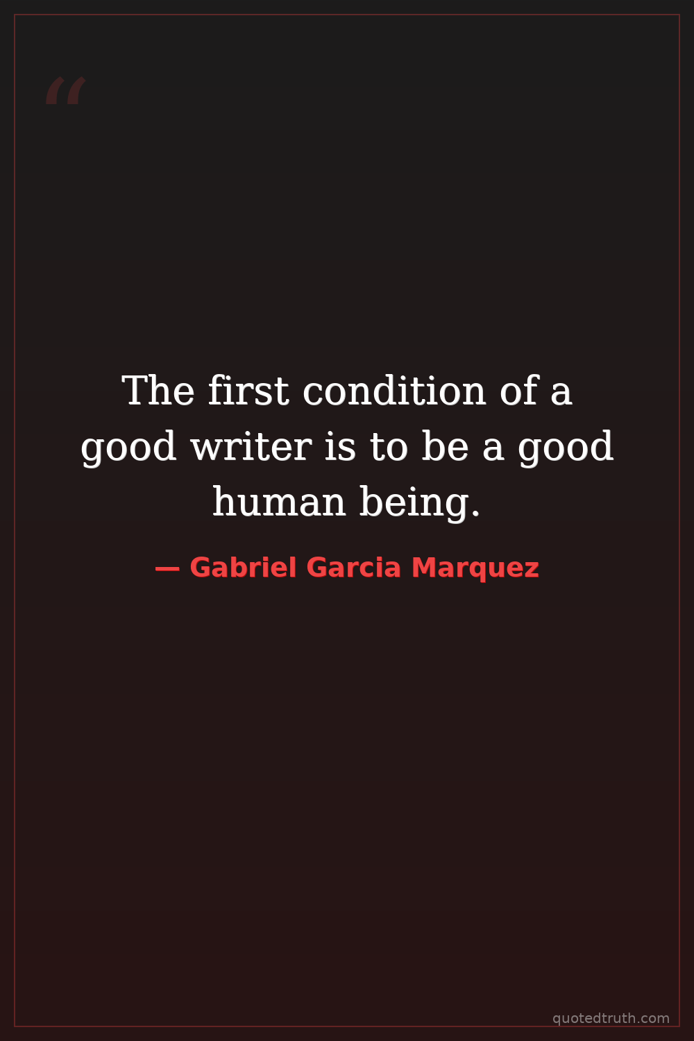 The first condition of a good writer is to be a good human being.