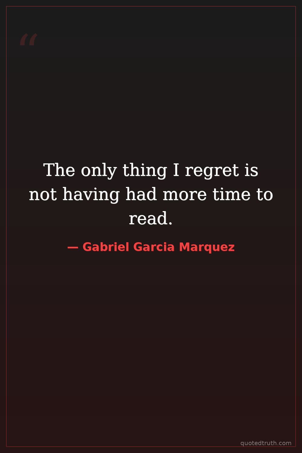 The only thing I regret is not having had more time to read.