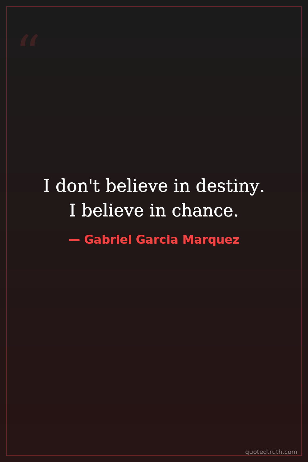 I don't believe in destiny. I believe in chance.