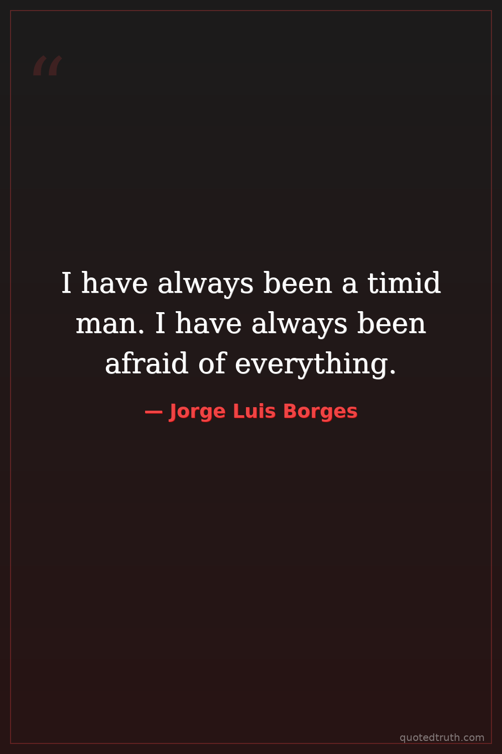 I have always been a timid man. I have always been afraid of everything.
