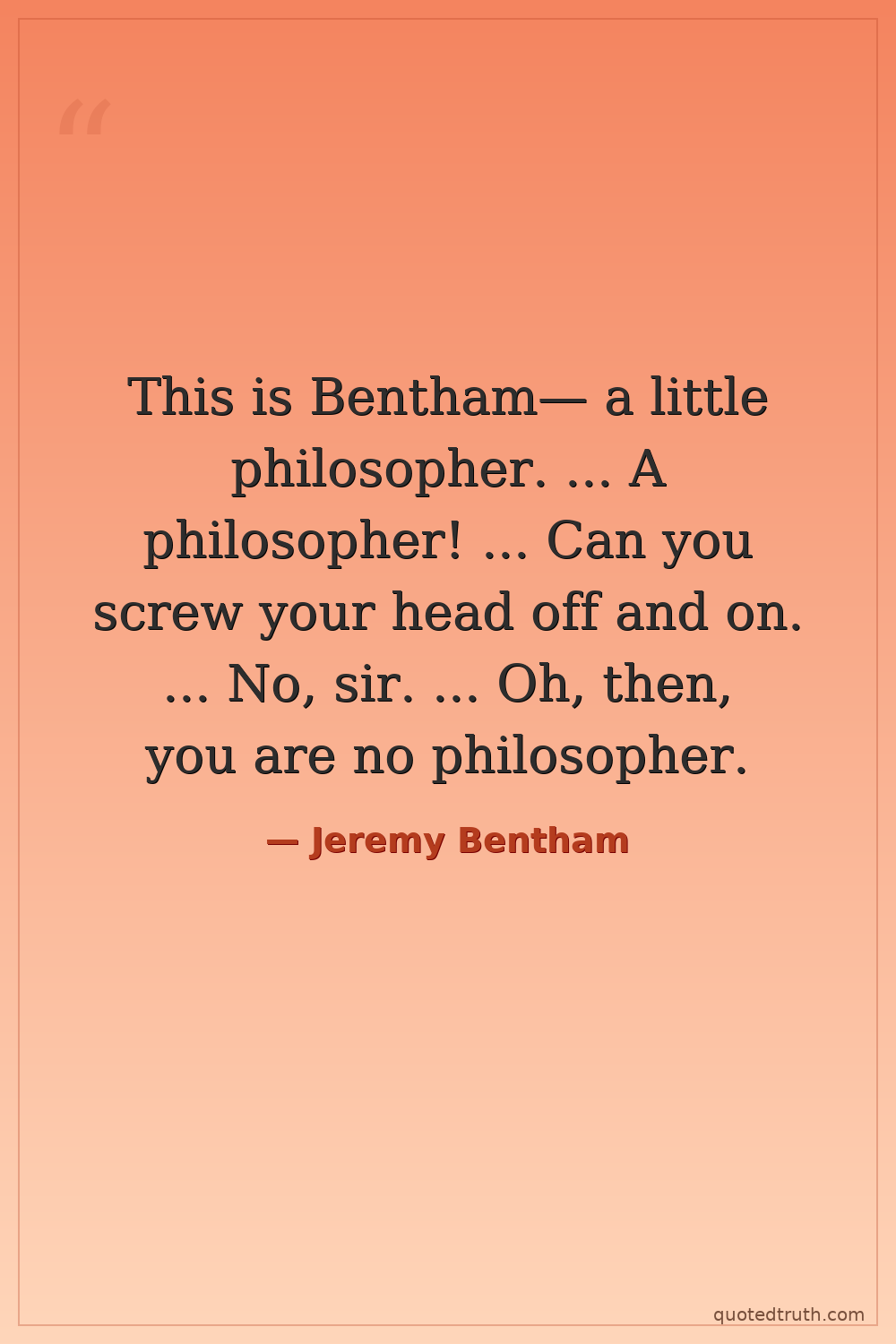 This is Bentham— a little philosopher. ... A philosopher! ... Can you screw your head off and on. ... No, sir. ... Oh, then, you are no philosopher.