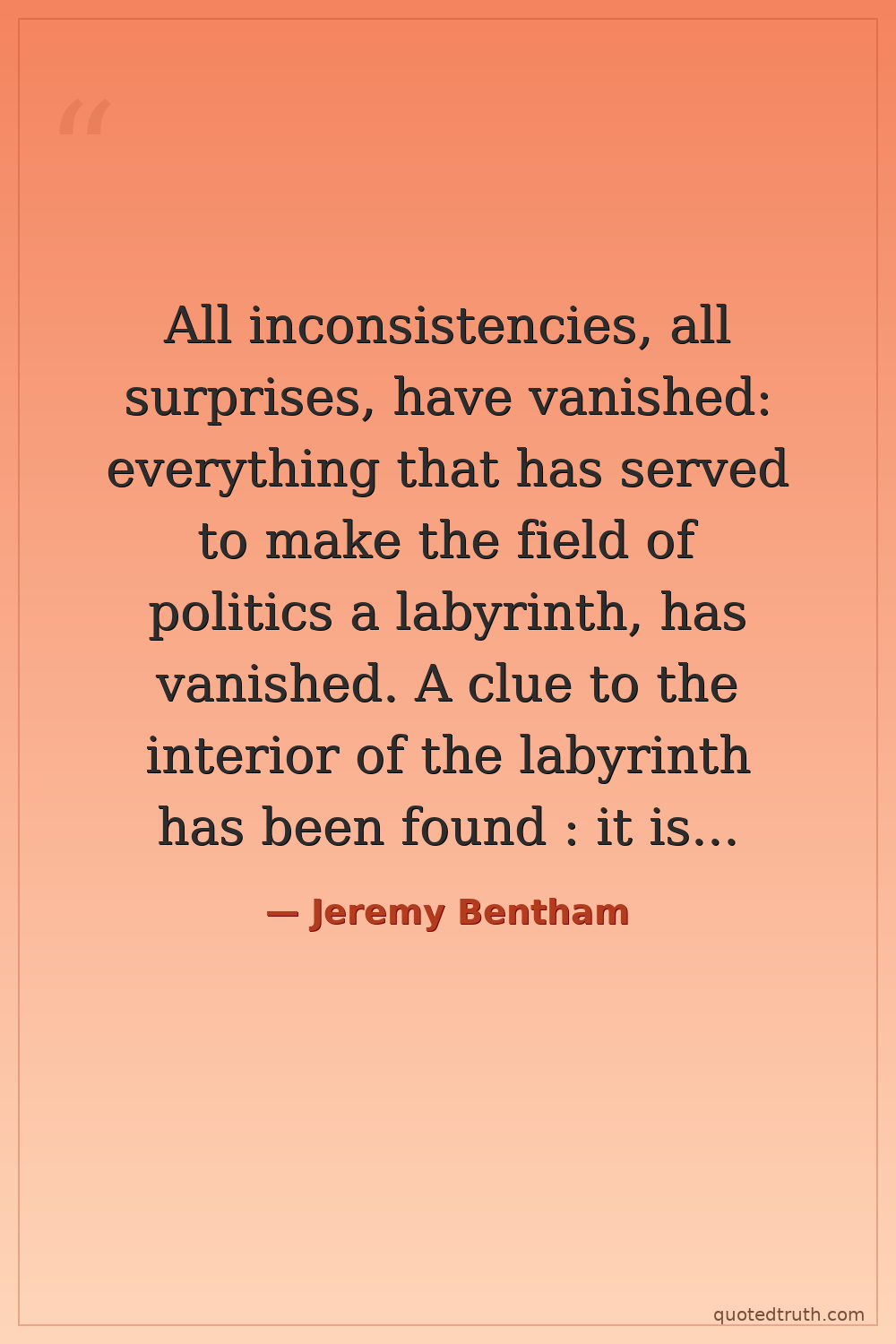 All inconsistencies, all surprises, have vanished: everything that has served to make the field of politics a labyrinth, has vanished. A clue to the interior of the labyrinth has been found : it is the principle of self-preference.