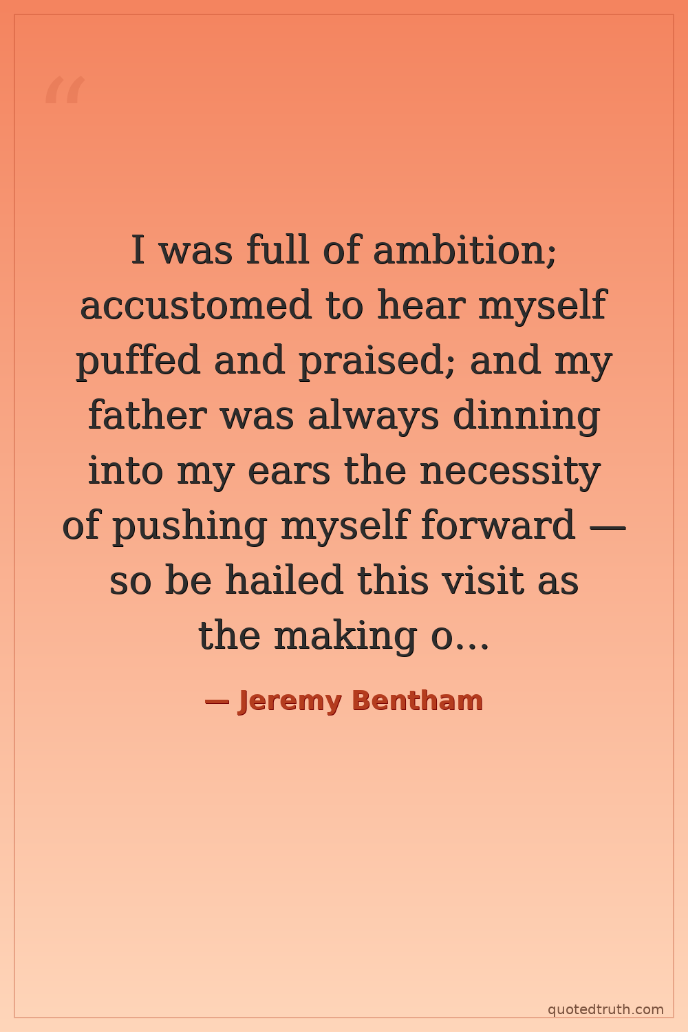 I was full of ambition; accustomed to hear myself puffed and praised; and my father was always dinning into my ears the necessity of pushing myself forward — so be hailed this visit as the making of my fortune.
