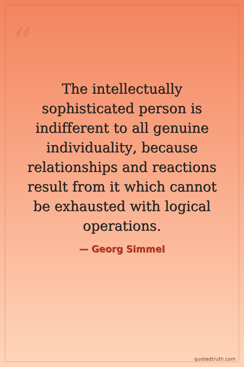 The intellectually sophisticated person is indifferent to all genuine individuality, because relationships and reactions result from it which cannot be exhausted with logical operations.