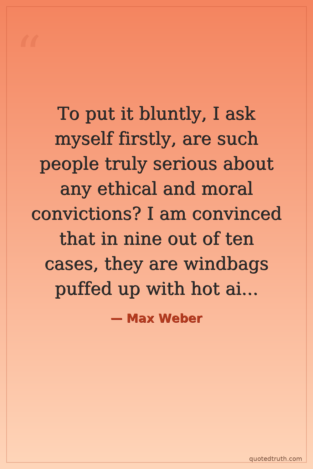 To put it bluntly, I ask myself firstly, are such people truly serious about any ethical and moral convictions? I am convinced that in nine out of ten cases, they are windbags puffed up with hot air about themselves. They are not in touch with reality, and they do not feel the burden they need to shoulder—they just intoxicate themselves with romantic sensations.