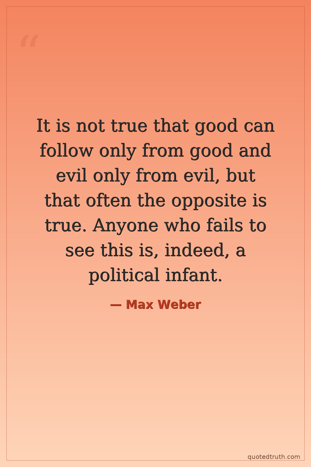 It is not true that good can follow only from good and evil only from evil, but that often the opposite is true. Anyone who fails to see this is, indeed, a political infant.