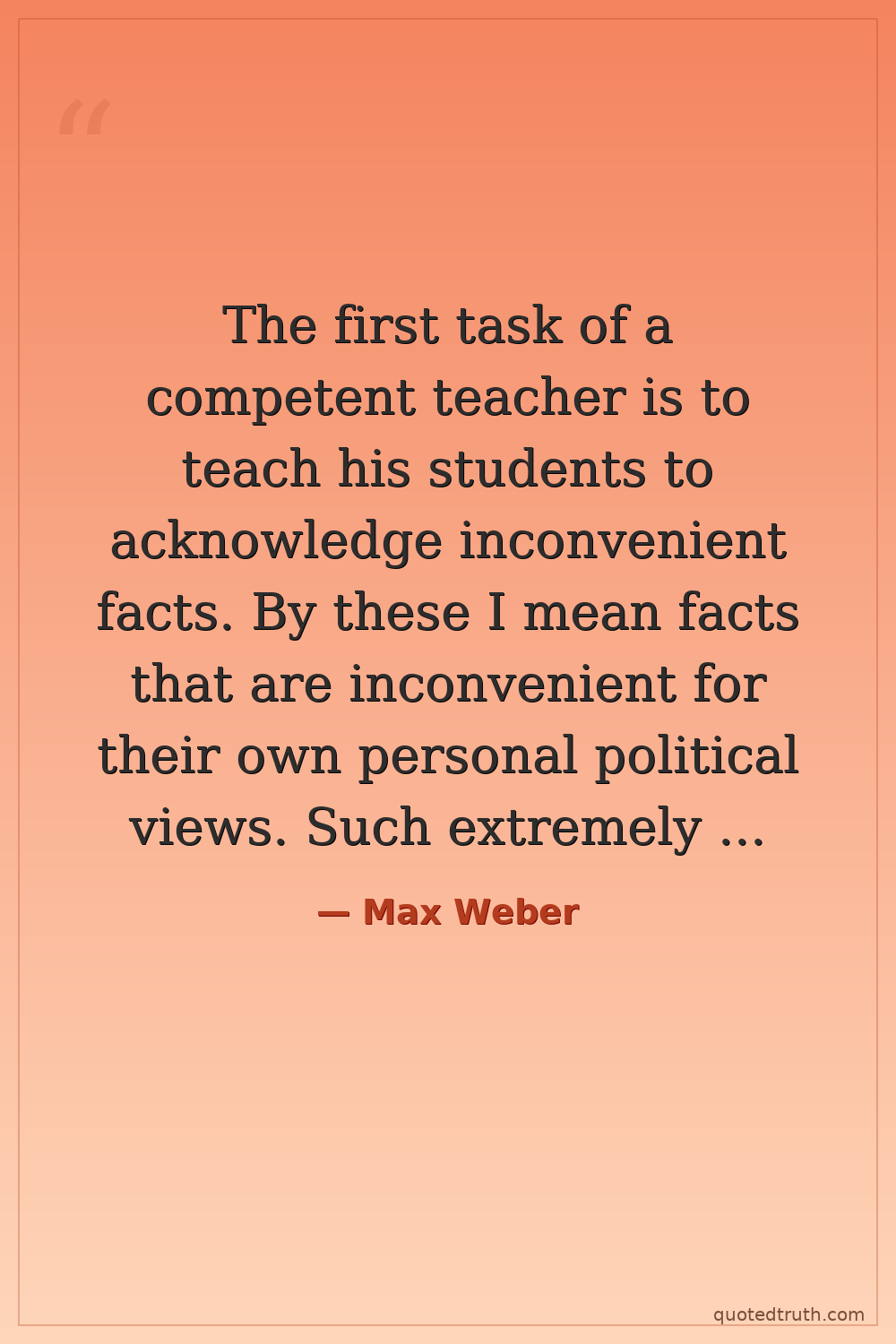 The first task of a competent teacher is to teach his students to acknowledge inconvenient facts. By these I mean facts that are inconvenient for their own personal political views. Such extremely inconvenient facts exist for every political position.