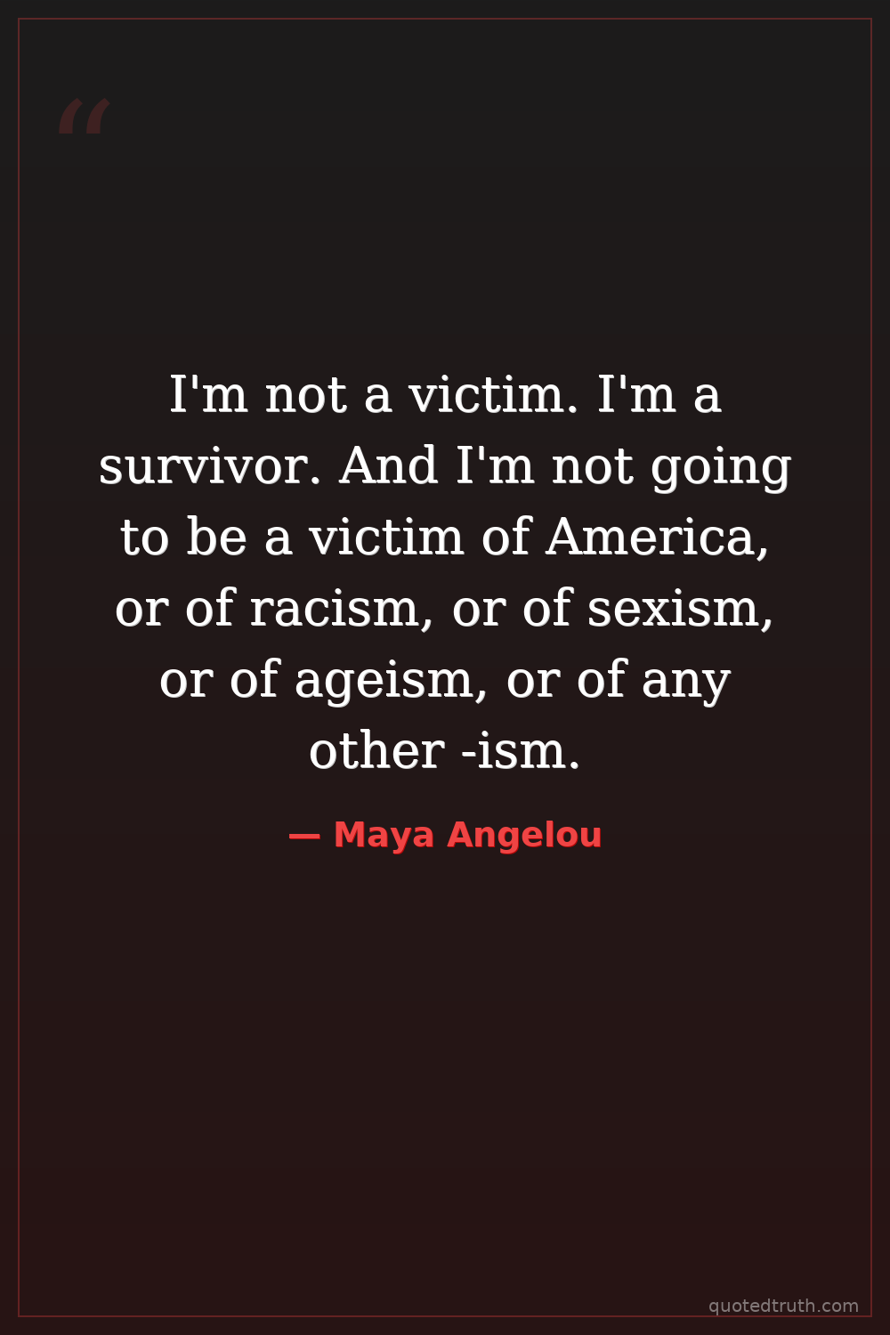 I'm not a victim. I'm a survivor. And I'm not going to be a victim of America, or of racism, or of sexism, or of ageism, or of any other -ism.