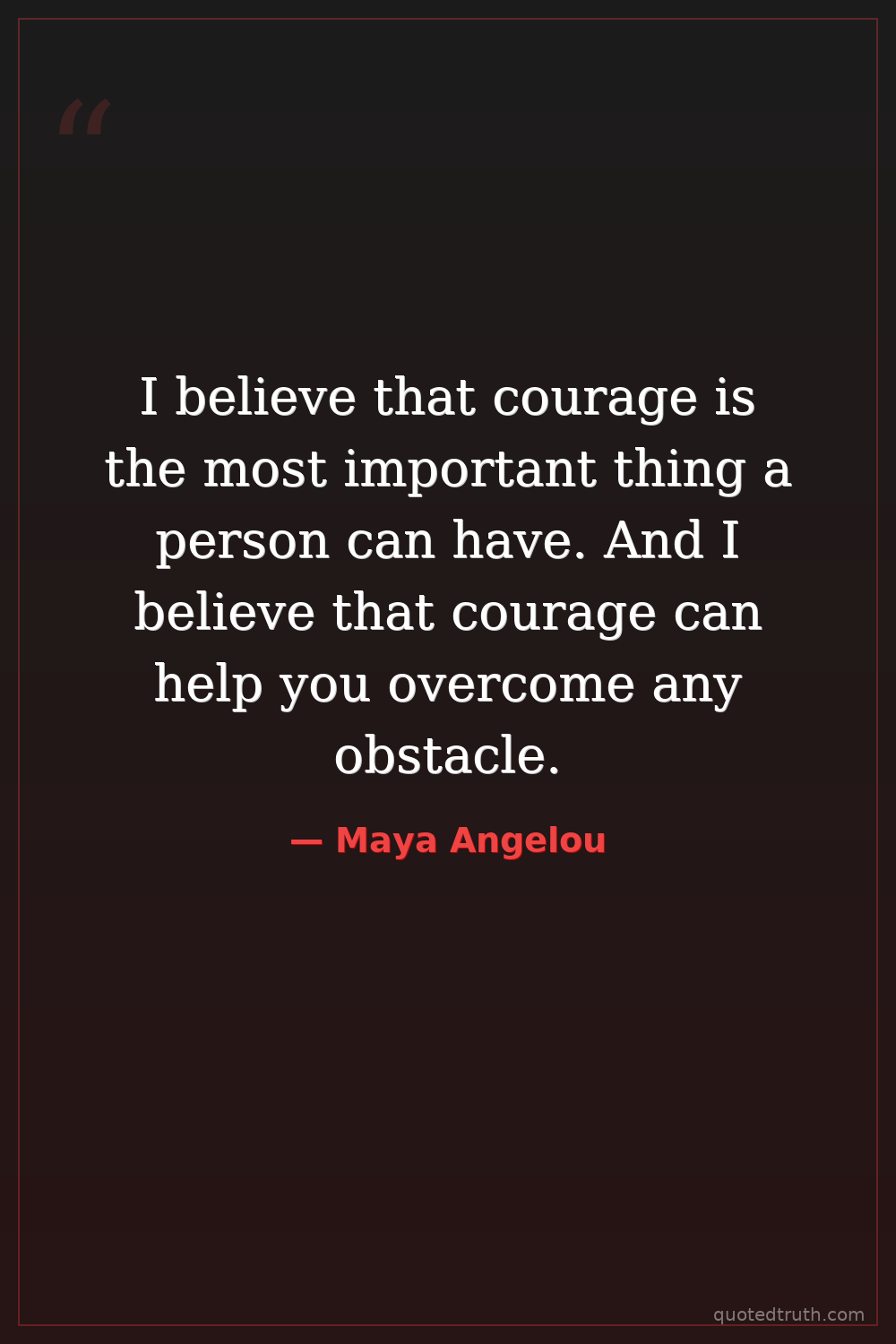 I believe that courage is the most important thing a person can have. And I believe that courage can help you overcome any obstacle.