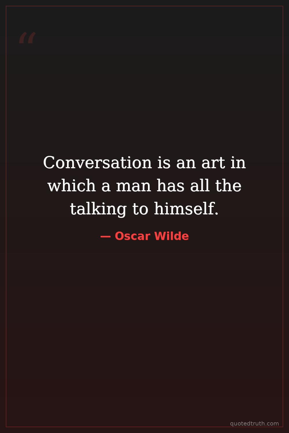 Conversation is an art in which a man has all the talking to himself.