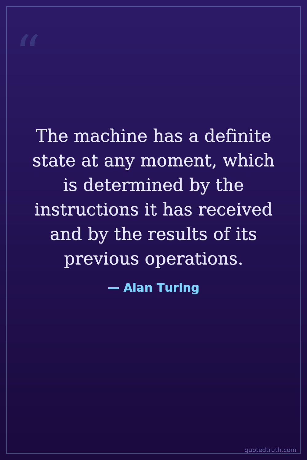 The machine has a definite state at any moment, which is determined by the instructions it has received and by the results of its previous operations.