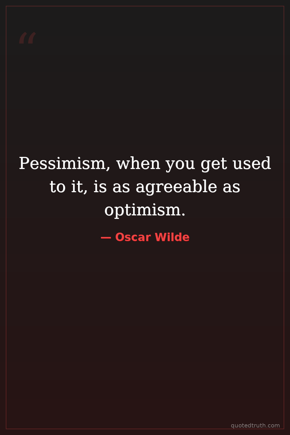Pessimism, when you get used to it, is as agreeable as optimism.