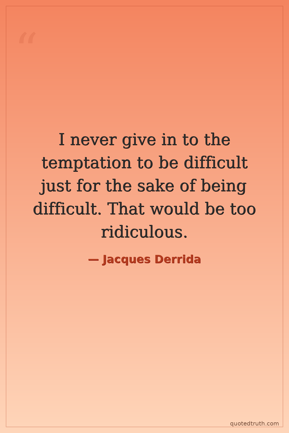I never give in to the temptation to be difficult just for the sake of being difficult. That would be too ridiculous.