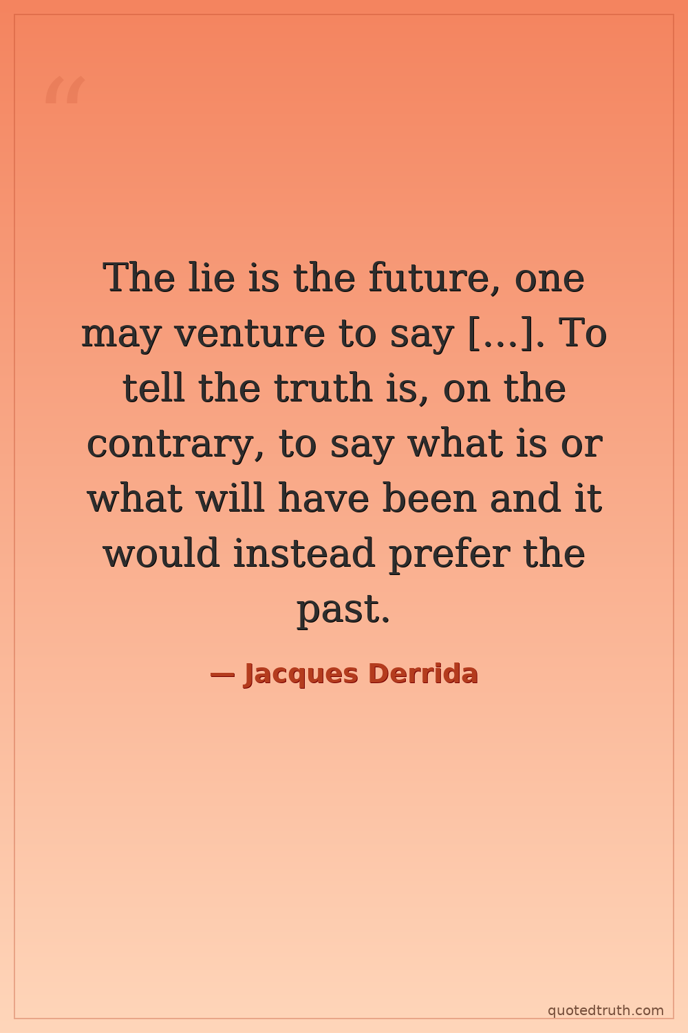 The lie is the future, one may venture to say [...]. To tell the truth is, on the contrary, to say what is or what will have been and it would instead prefer the past.