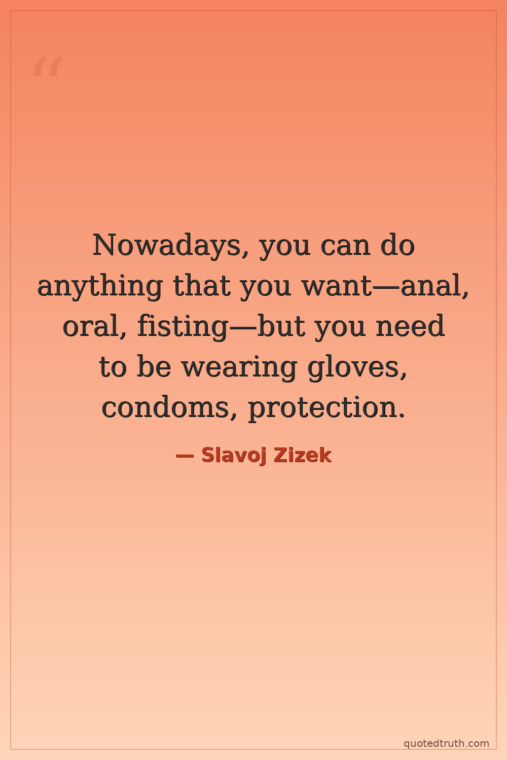Nowadays, you can do anything that you want—anal, oral, fisting—but you need to be wearing gloves, condoms, protection.