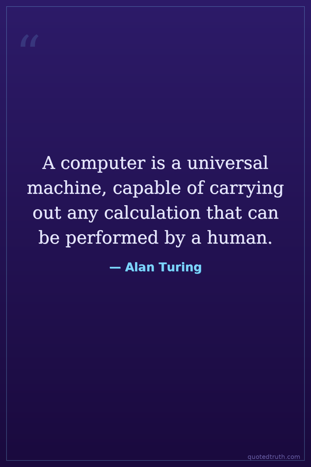 A computer is a universal machine, capable of carrying out any calculation that can be performed by a human.