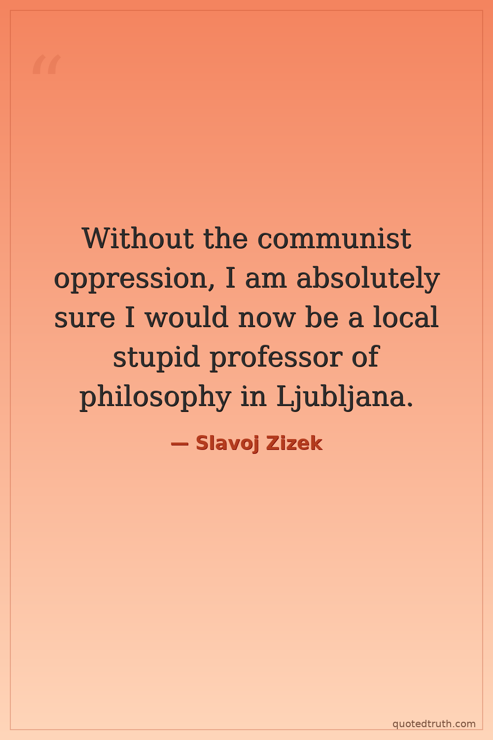 Without the communist oppression, I am absolutely sure I would now be a local stupid professor of philosophy in Ljubljana.