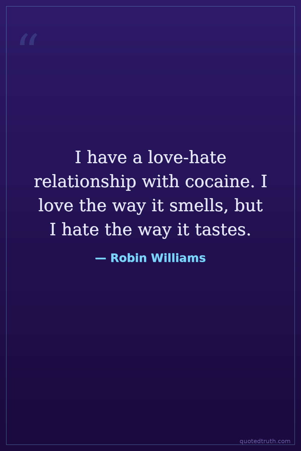 I have a love-hate relationship with cocaine. I love the way it smells, but I hate the way it tastes.