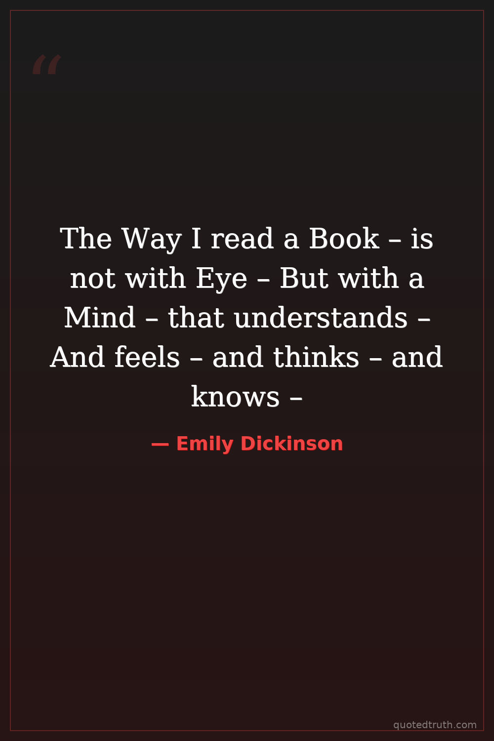 The Way I read a Book – is not with Eye – But with a Mind – that understands – And feels – and thinks – and knows –