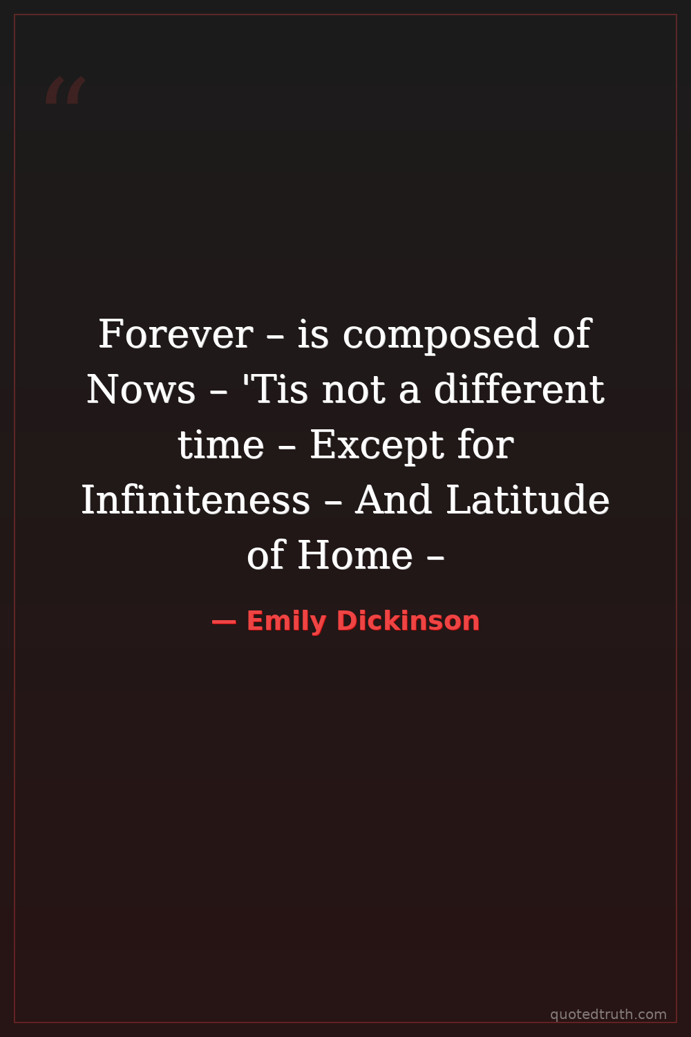Forever – is composed of Nows – 'Tis not a different time – Except for Infiniteness – And Latitude of Home –